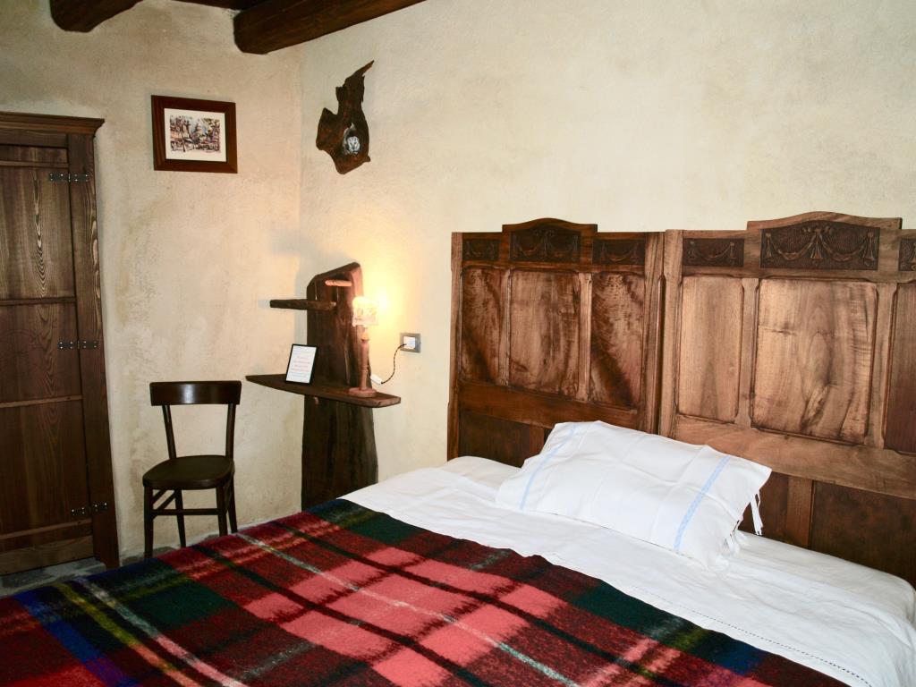 La camera è realizzata con rivestimenti in legno e materiali locali, riscaldamento a pavimento e stufa a legna.