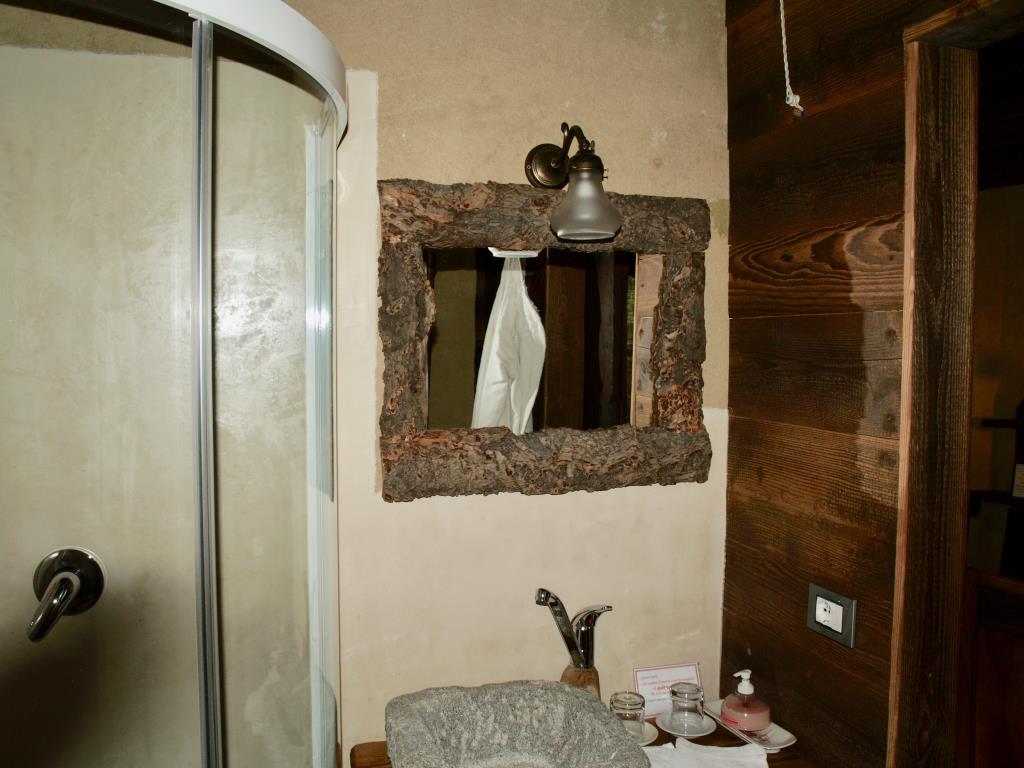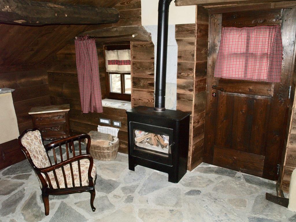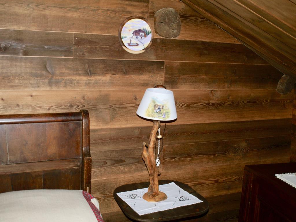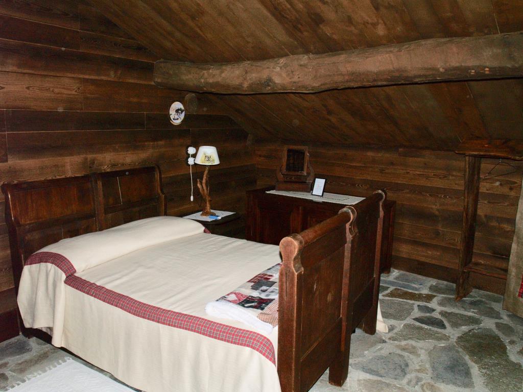 La camera è realizzata con rivestimenti in legno e materiali locali, riscaldamento a pavimento e stufa a legna.