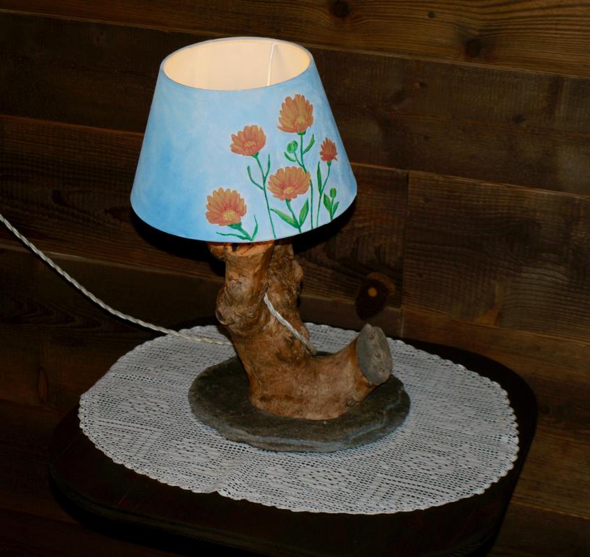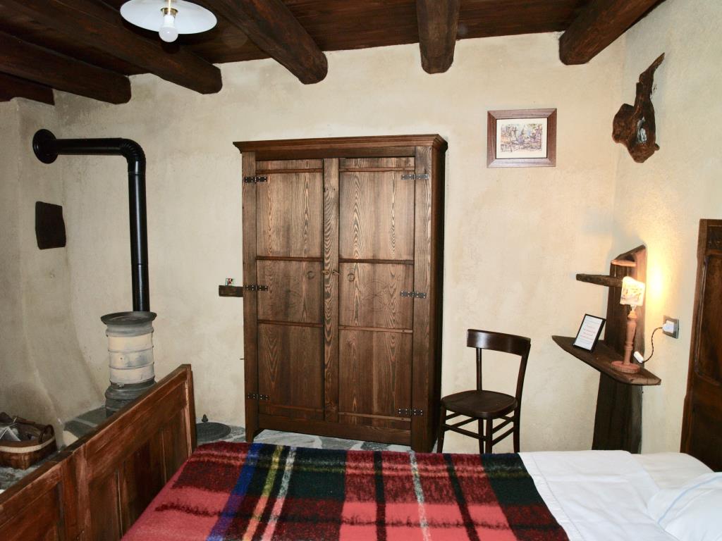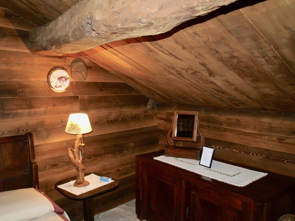 Das Zimmer ist mit Holzverkleidung und lokalen Materialien, Fußbodenheizung und Kamin gebildet.