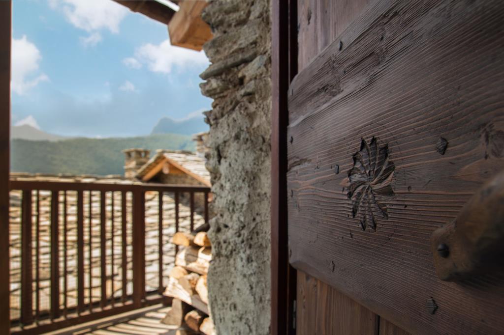 La camera è realizzata con rivestimenti in legno e materiali locali, riscaldamento a pavimento e stufa a legna funzionante.